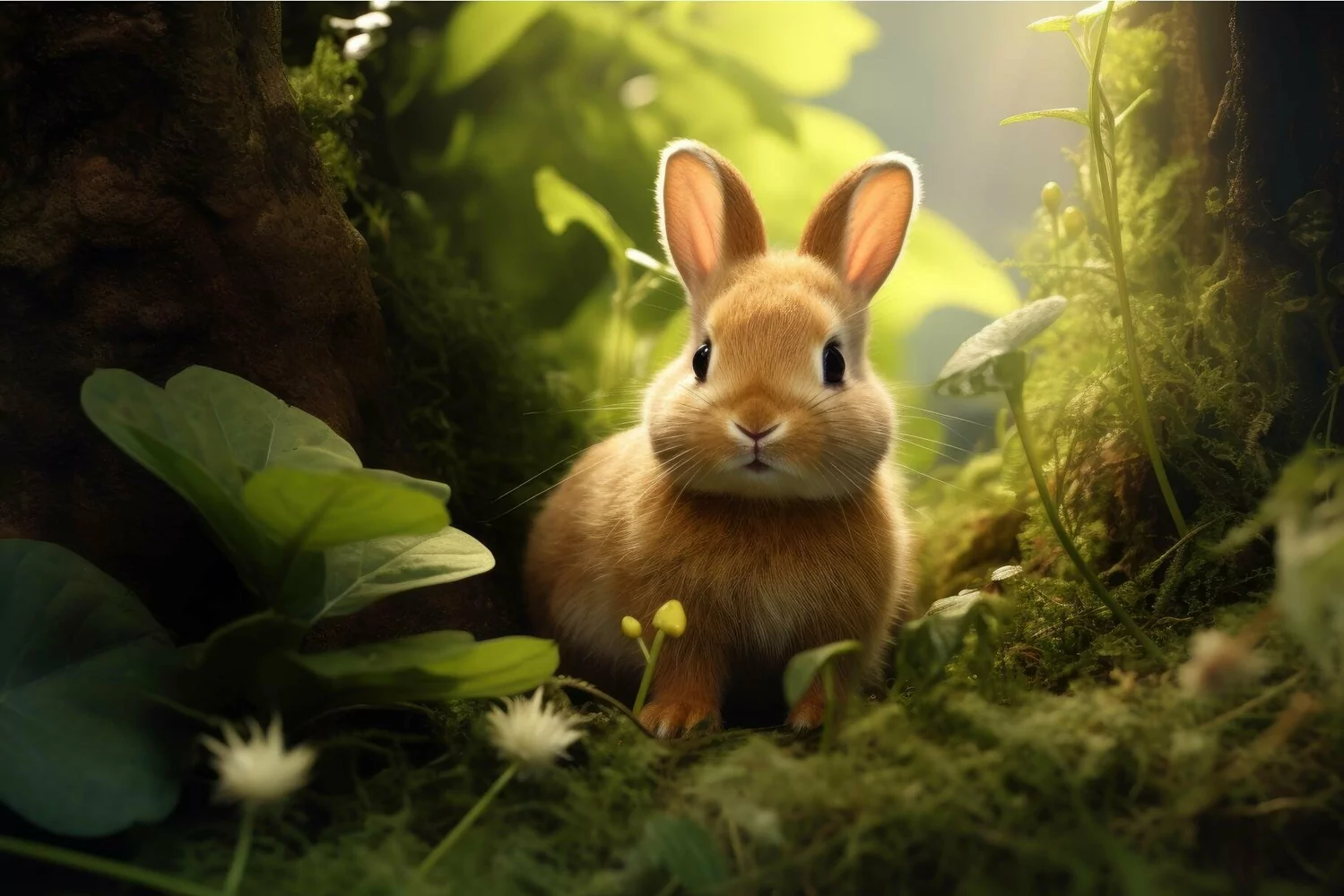 Fluffy Fairy cute rabbit forest. Generate Ai example image 1