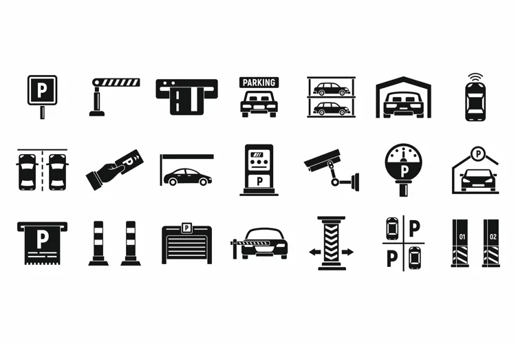 Underground parking icons set. Simple set of underground parking vector icons for web design on white background