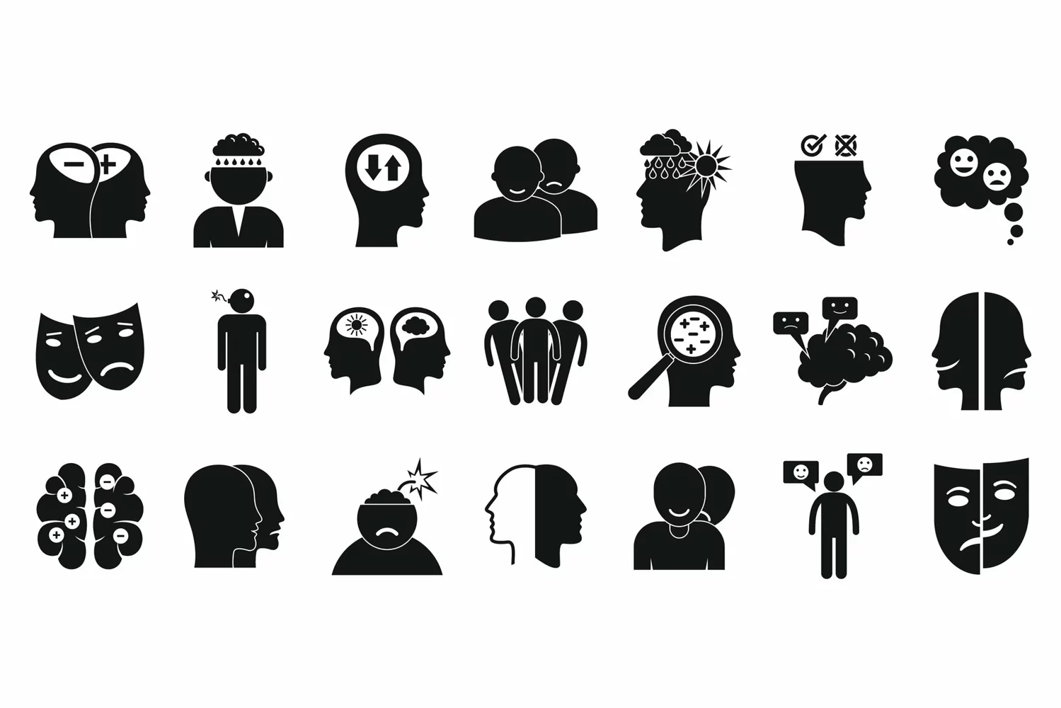 Bipolar disorder icons set. Simple set of bipolar disorder vector icons for web design on white background