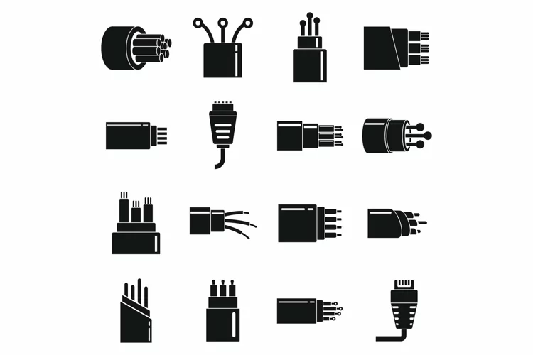 Optical fiber cable icons set. Simple set of optical fiber cable vector icons for web design on white background