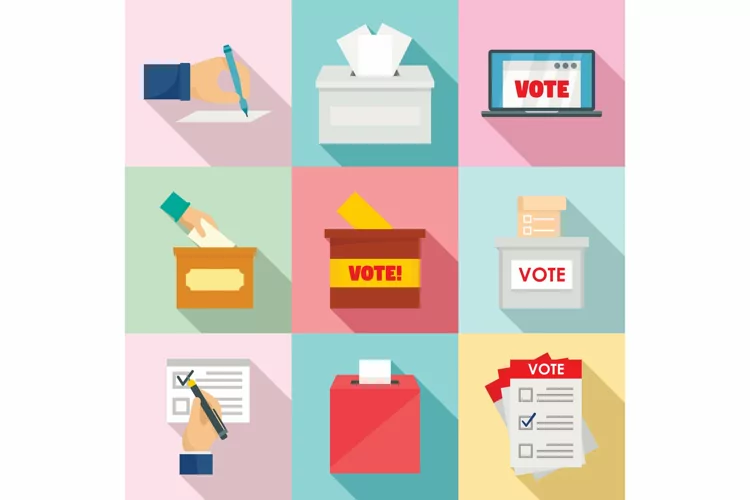 Ballot voting box vote icons set, flat style