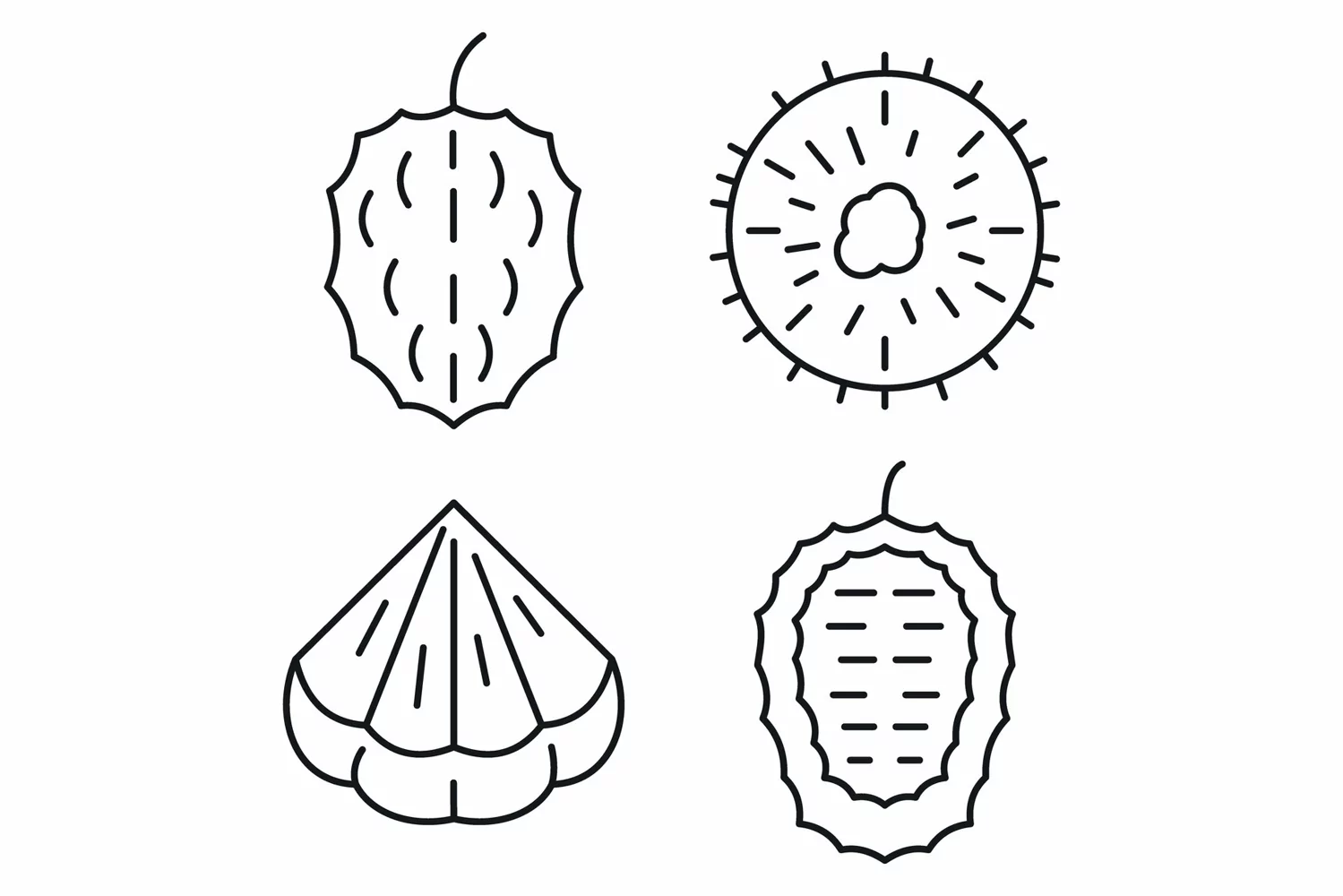 Soursop icons set. Outline set of soursop vector icons for web design isolated on white background