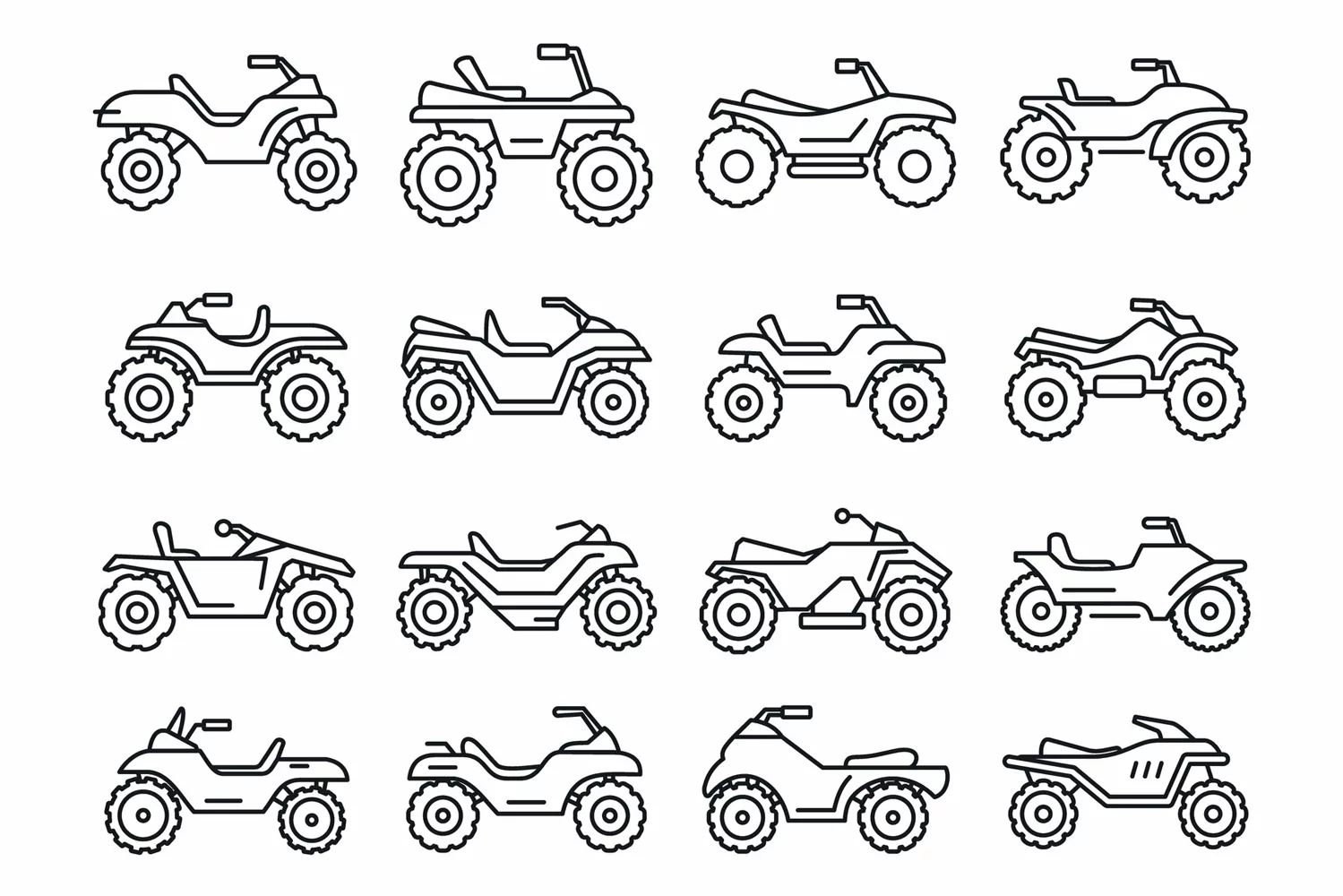 Sport quad bike icons set. Outline set of sport quad bike vector icons for web design isolated on white background