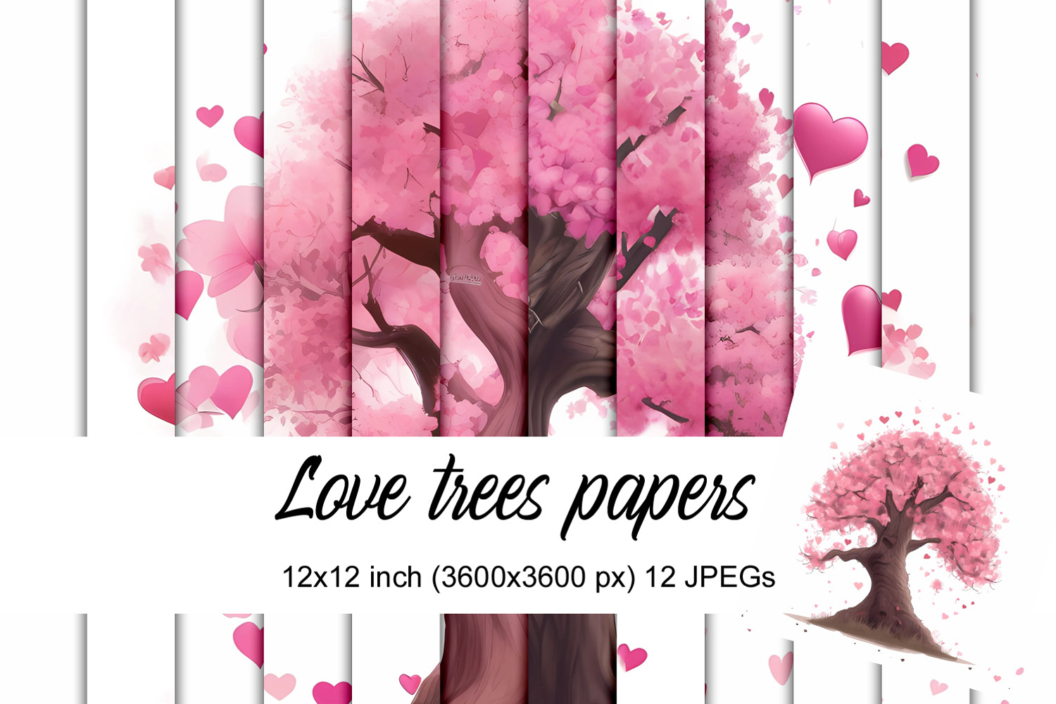 Digital Paper Pack Valentine Paper Pack Love Trees Trees Paper Pack