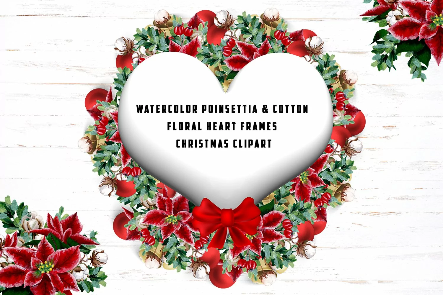 Illustration Clipart Watercolor Flowers Watercolor Christmas Watercolor Hearts Watercolor Poinsettia Watercolor Cotton Heart Frame Floral Frames Watercolor Floral Frames