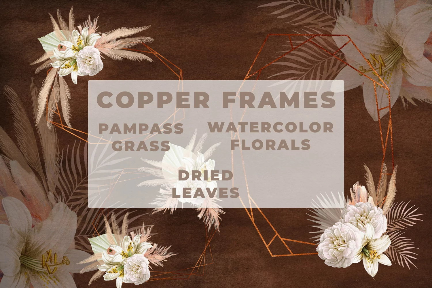 This collection includes hand painted Watercolor Pampas Grass Copper Frames, perfect for fabric, apparel, kids clothes, baby shower, packaging, sublimation printing, scrapbooking, stickers, mugs, card-making, invitations,decorating your blog or website.
