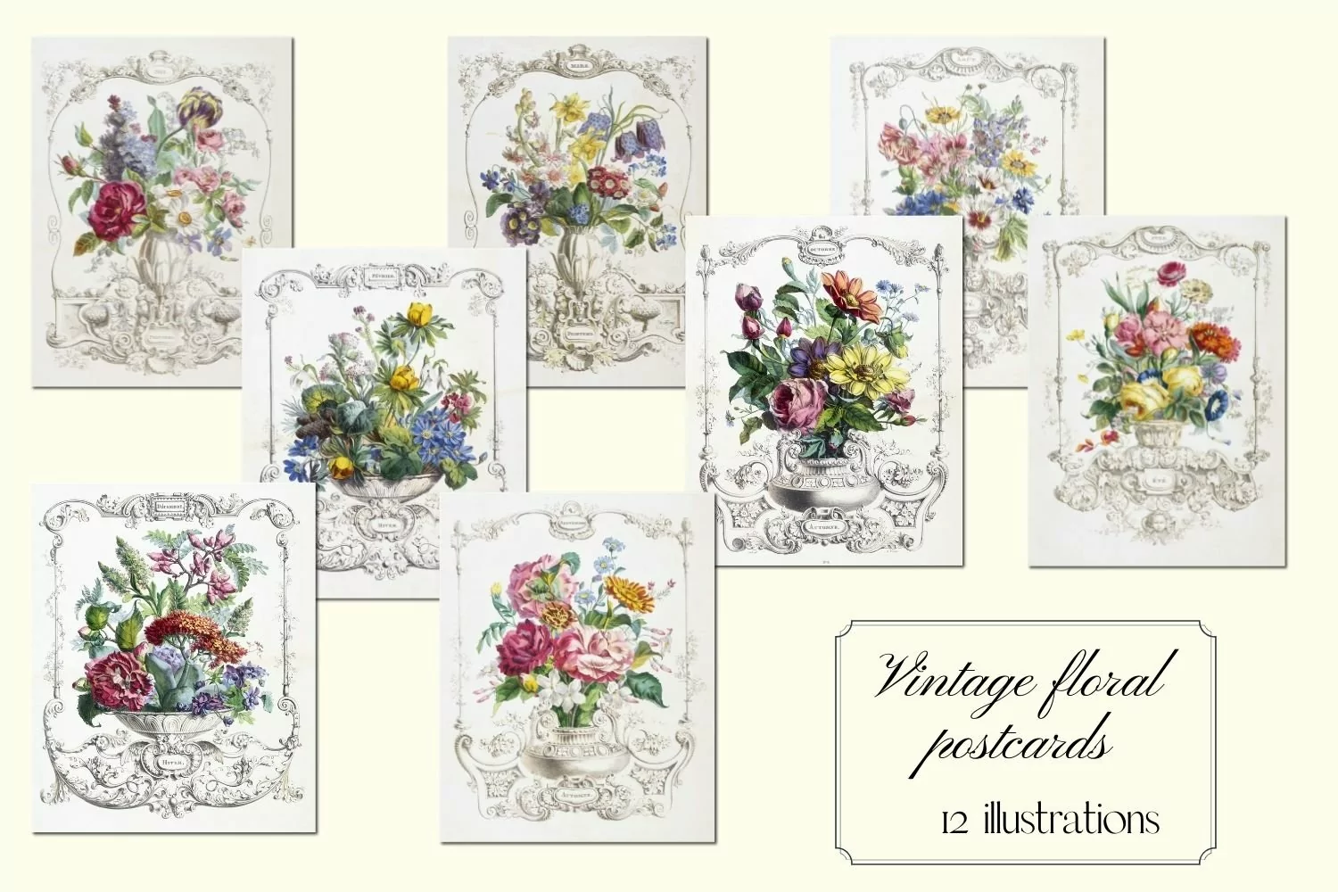 Vintage Floral Postcards, Ephemera Pack example image 1