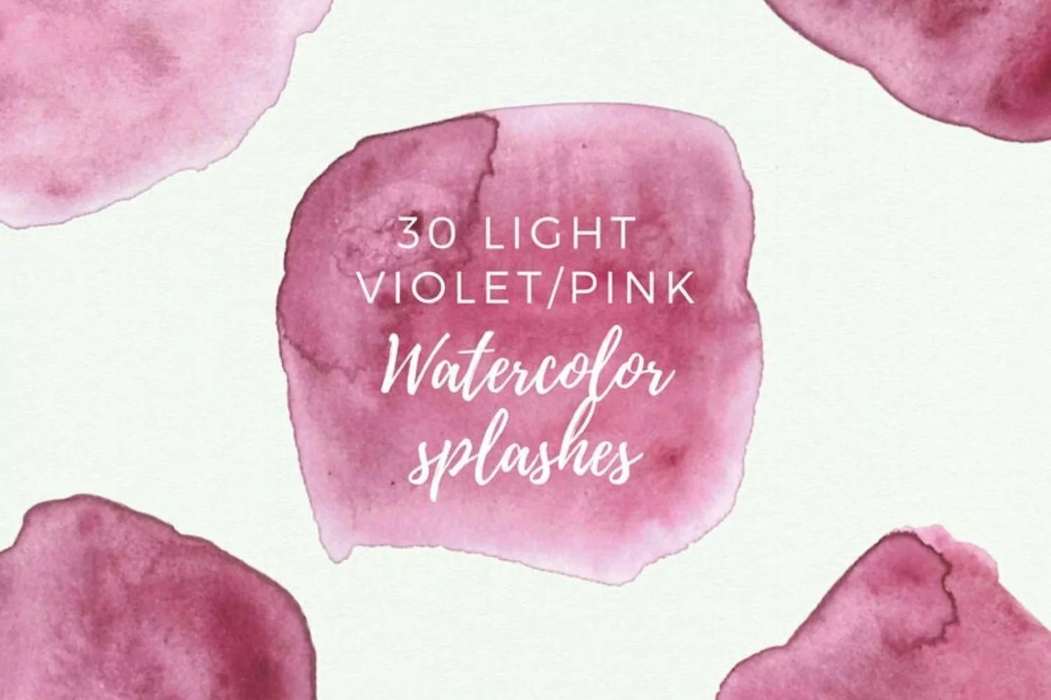 ♥ Set of 30 light violet/pink watercolor splashes ♥
