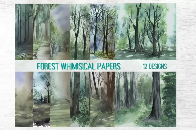 Watercolor Papers Forest Patterns Forest Papers Forest Background Halloween Forest Nature Wall Art Forest Backgrounds Forest Textures Nature Watercolor Papers Whimisical Forest