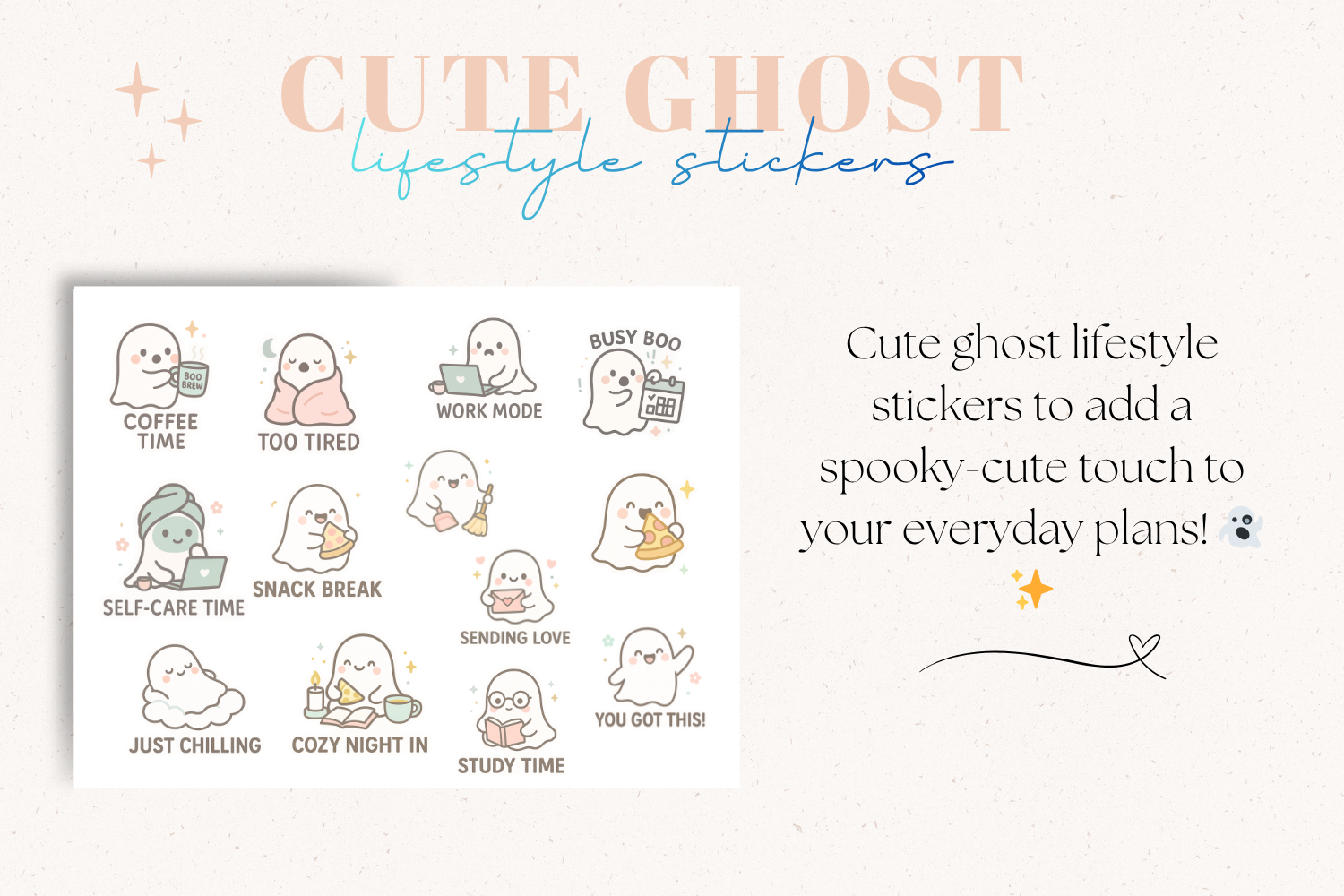 Bring a cozy, spooky-cute vibe to your everyday planning with this set of 13 Cute Ghost Lifestyle Stickers! 👻✨