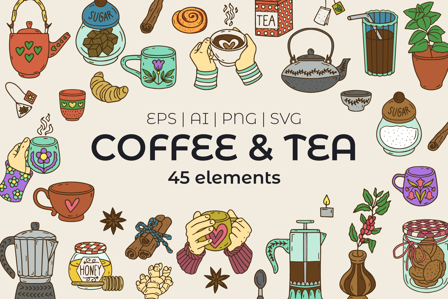 Elevate your cozy creative projects with this premium collection of 45 hand-drawn coffee and tea illustrations. Designed with a modern aesthetic featuring consistent line weights and a vibrant color palette, this set is perfect for branding, digital planning, and home decor crafts. Whether you are creating a slow-living blog, designing custom mugs, or building a cozy brand identity, these versatile vectors provide everything you need to brew up something beautiful. Every element is crafted to bring that essential hygge warmth to your products, making it a must-have for winter collections and self-care designs.