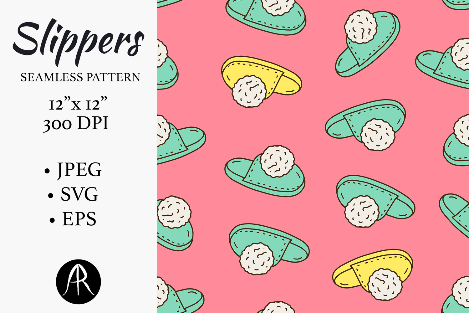 Cozy Fluffy Pom-Pom Slippers Seamless Pattern example image 1