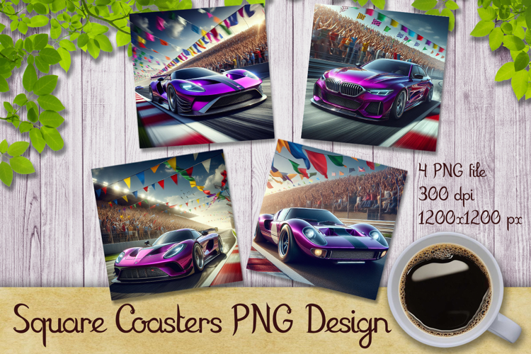 Illustration Square Race Racing Auto Car Digital Design Coasters Coaster Digital Illustration