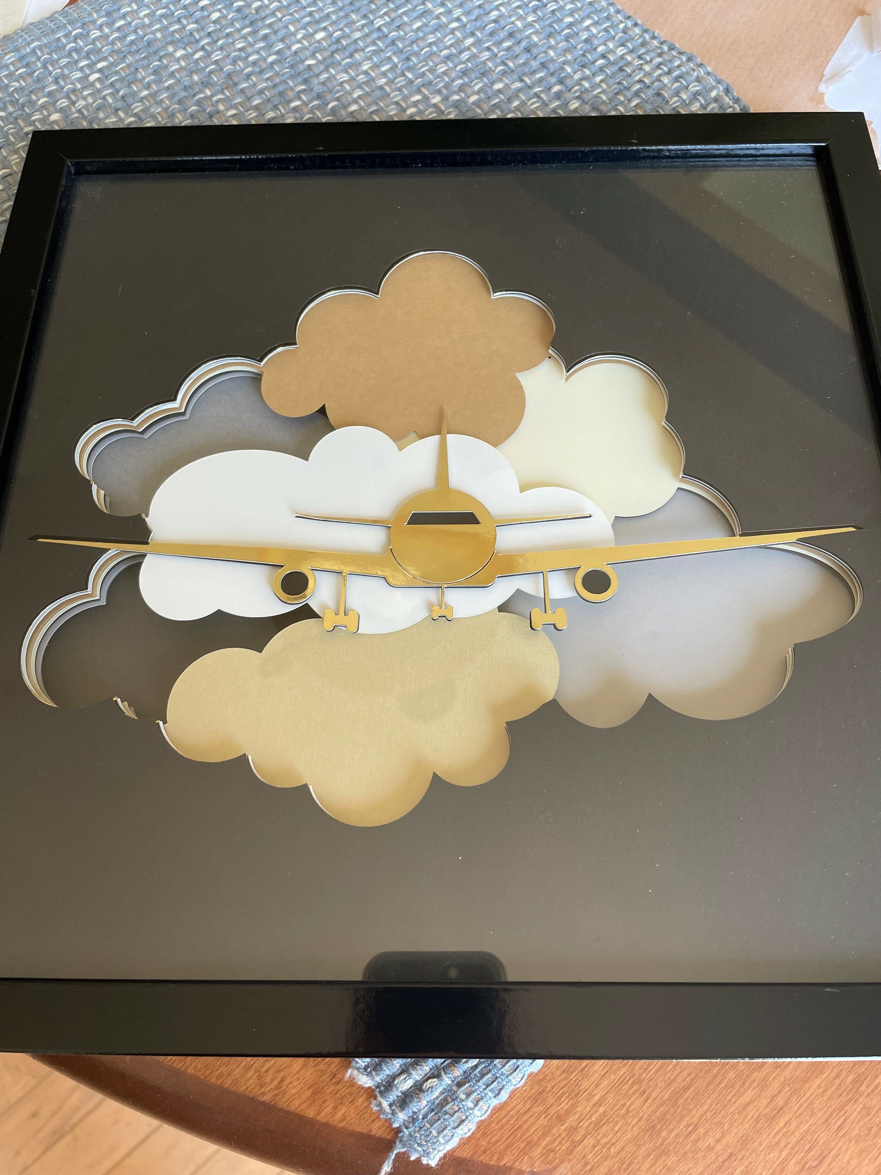 Airplane in the Sky Shadow Box - Paper Cutting