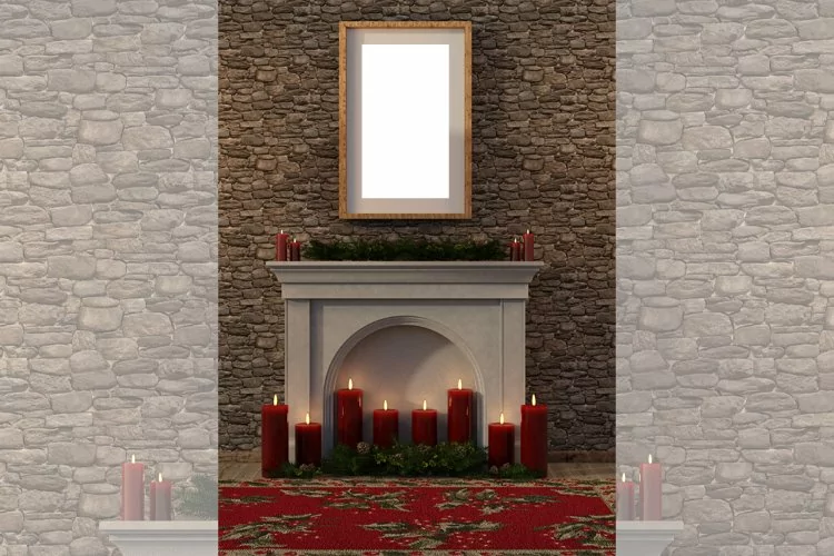Vintage Rustic Christmas Fireplace Frame Mockup Poster Mockup 3d Render Interior Mockup Living Room Mockup Room Mockup