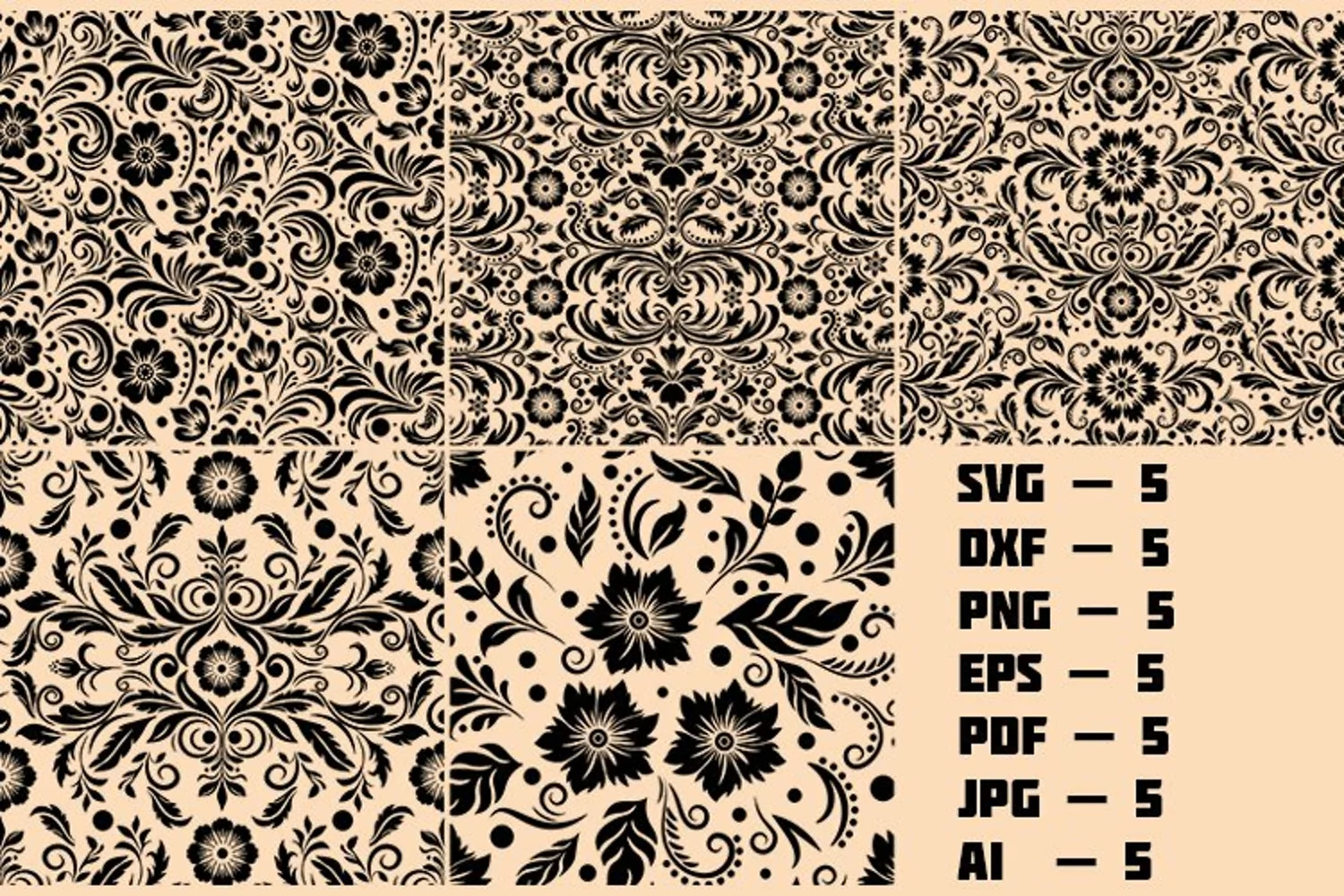 Black floral ornament seamless pattern example image 1
