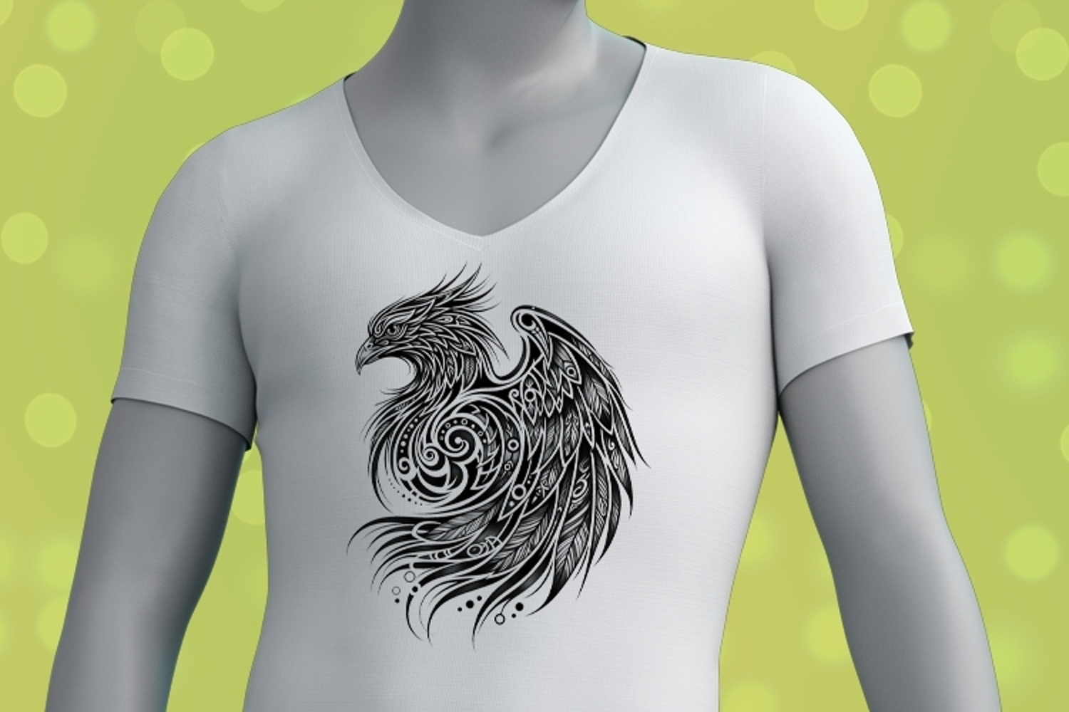 A powerful and intricate black silhouette of a phoenix rising with swirling tribal patterns. Perfect for bold t-shirts, stickers, tattoos, and home decor — ideal for those who love mythological, spiritual, or edgy designs.