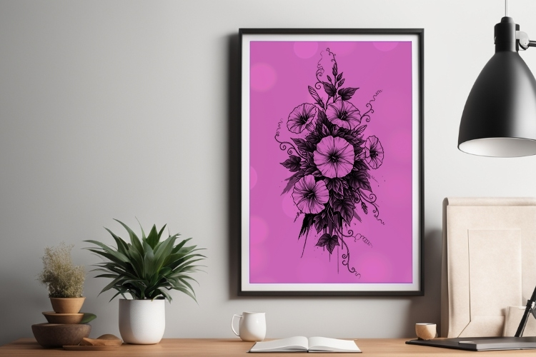 A delicate yet bold black-and-white floral arrangement perfect for tattoo sleeves or minimalist apparel. Features elegant blossoms and leaves with fine linework — ideal for lovers of classic botanical art and ink-inspired designs.