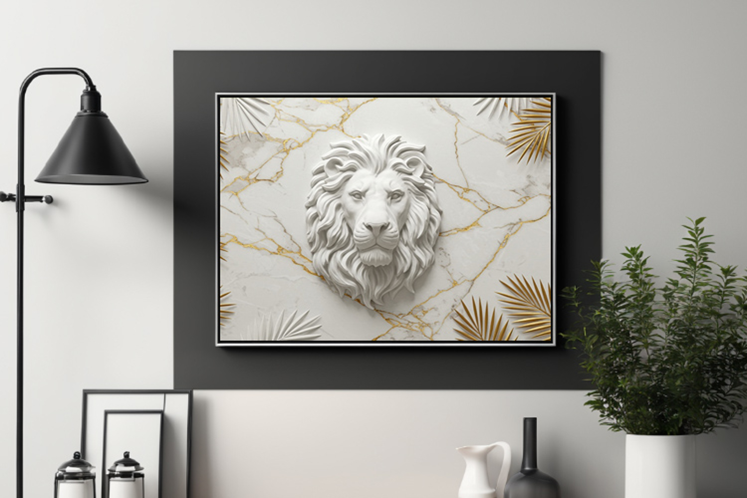 Add regal sophistication to any space with this curated set of 6 lion head reliefs—each uniquely posed and framed against luxurious white marble with golden veining or tropical palm accents. Perfect for luxury interiors, branding, or high-end print projects.