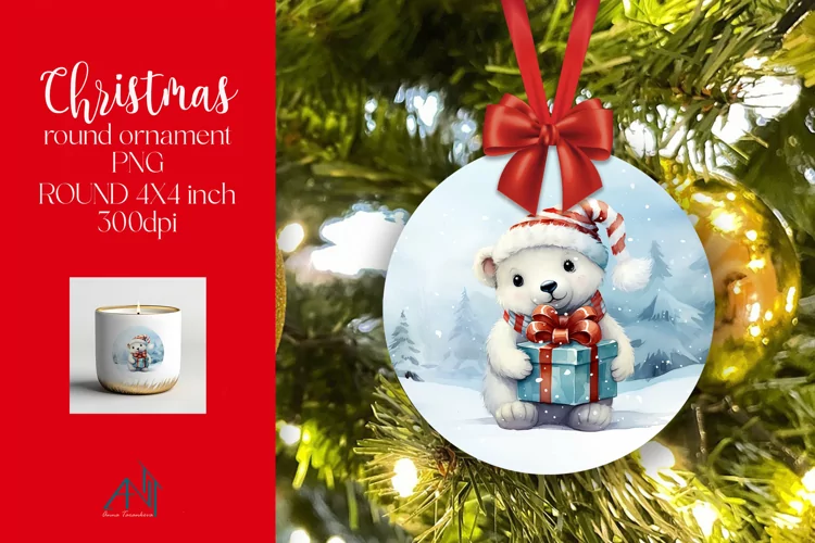 Christmas Round Ornament Sublimation PNG example image 1