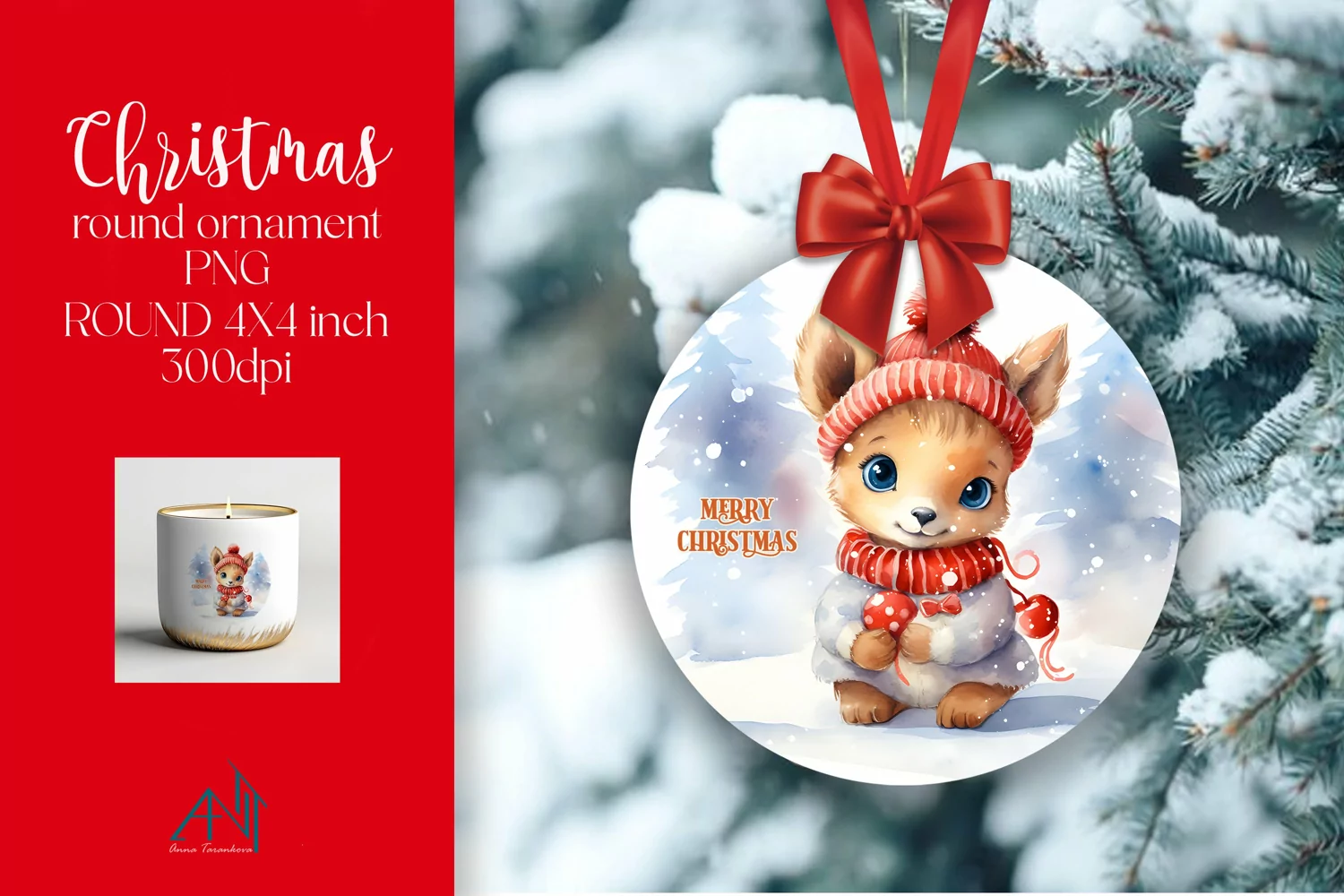 Christmas Round Ornament Sublimation PNG example image 1