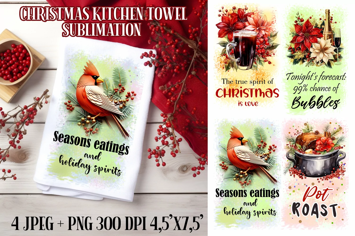 Christmas Towel Designs| Kitchen Towel Sublimation PNG