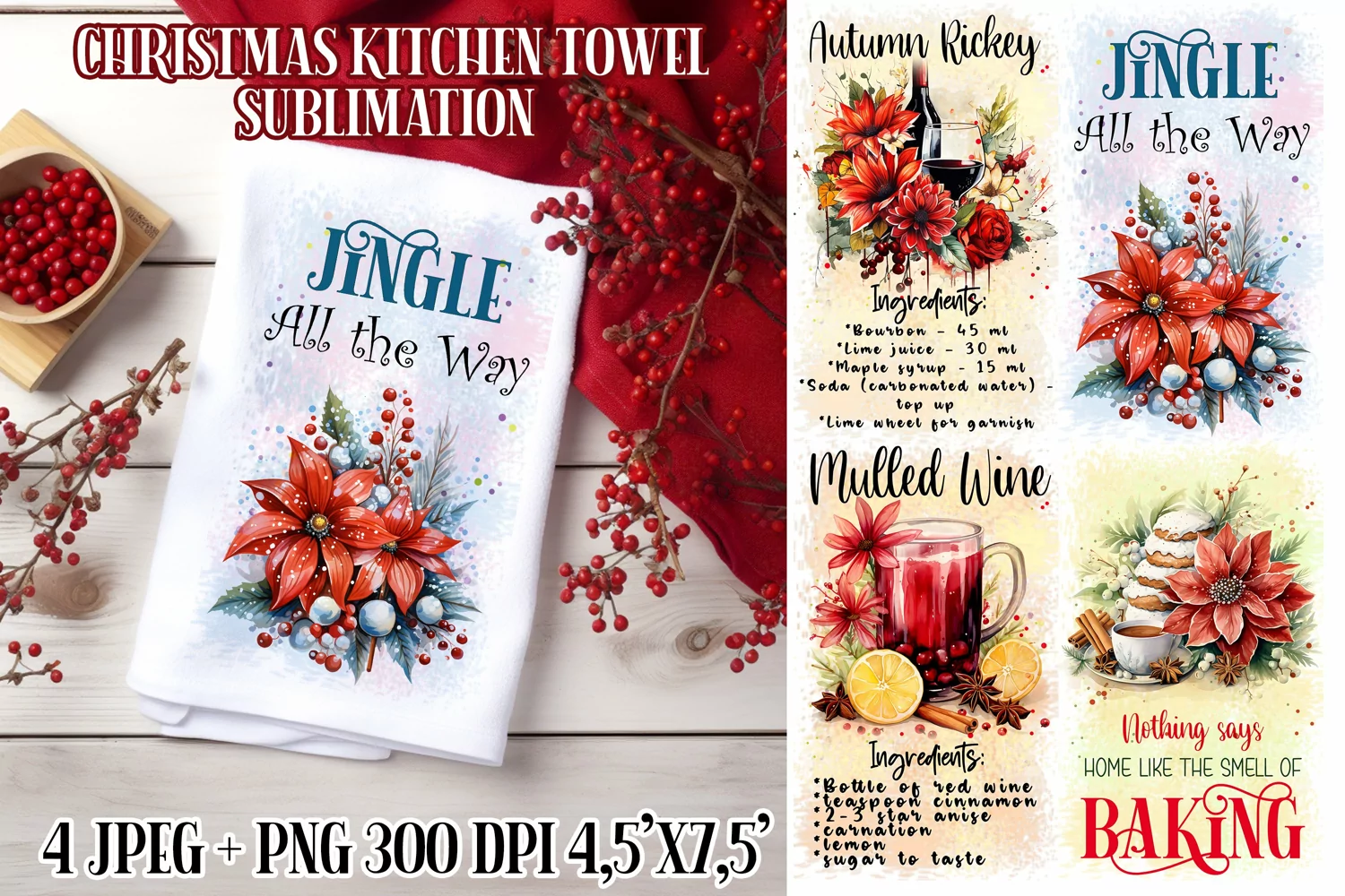 Christmas Towel Designs| Kitchen Towel Sublimation PNG