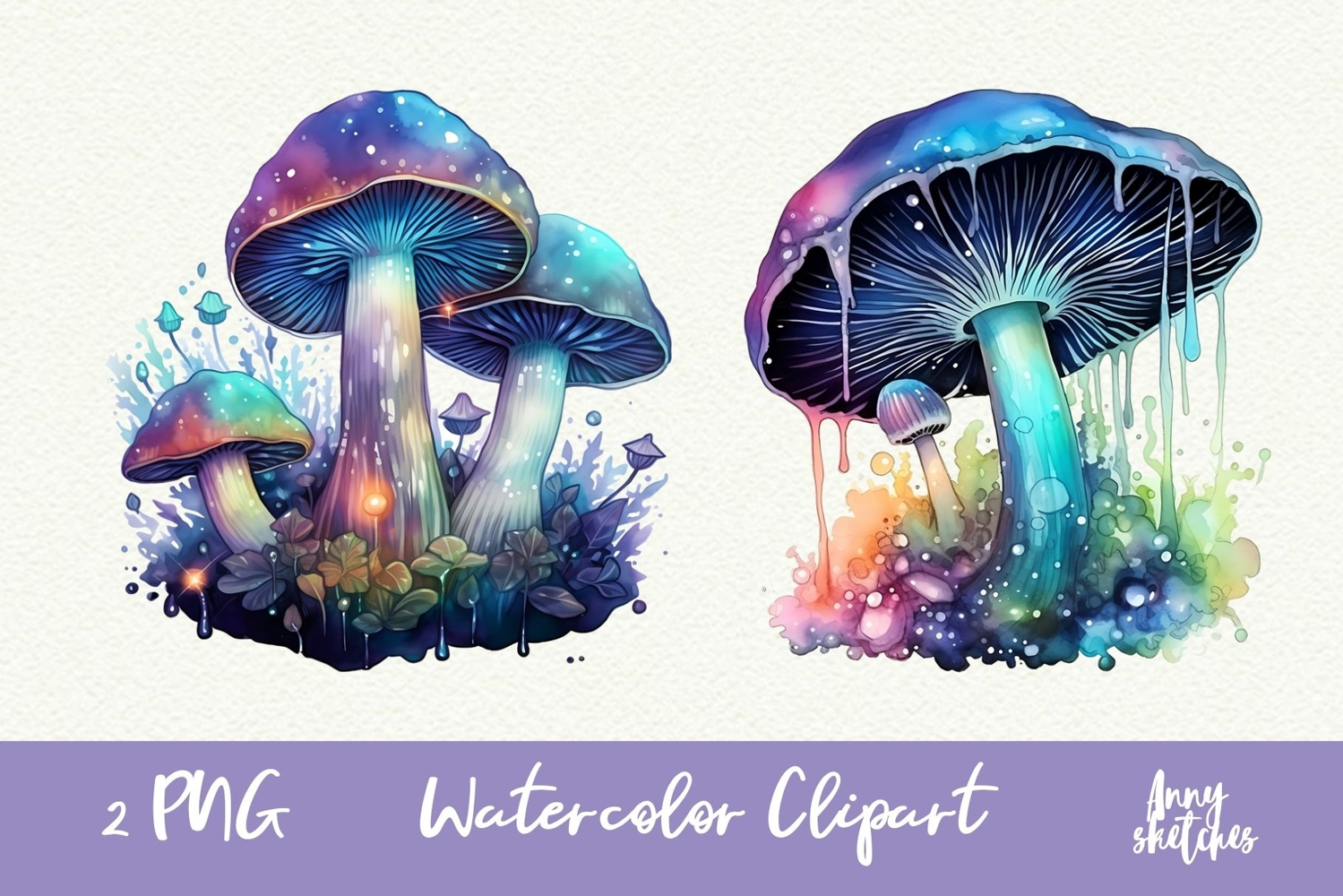 2 Bioluminescent Glowing Mushrooms Clipart Witchy PNG example image 1