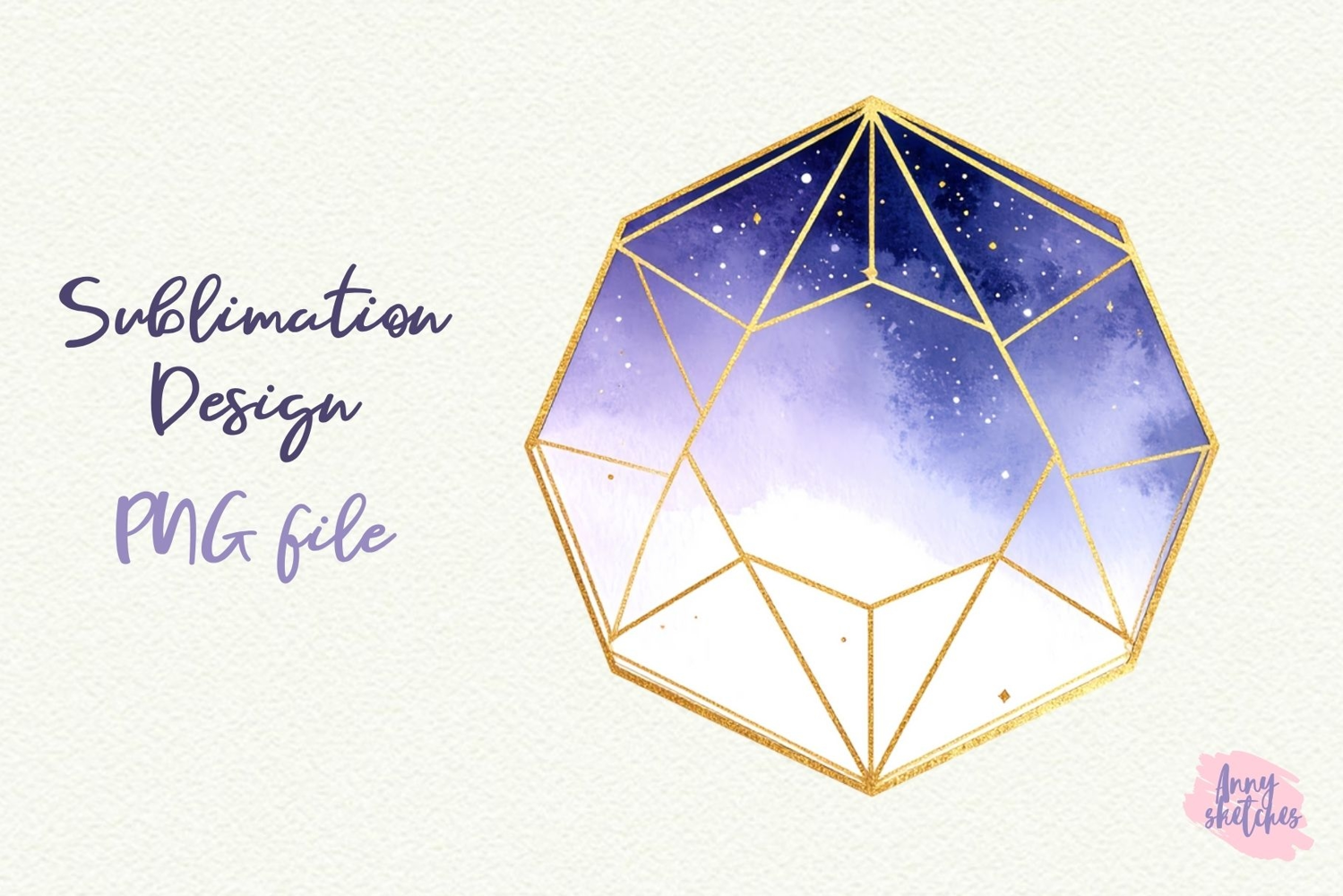 Dodecahedron Sacred Geometry Celestial Watercolor Clipart – Sublimation Design