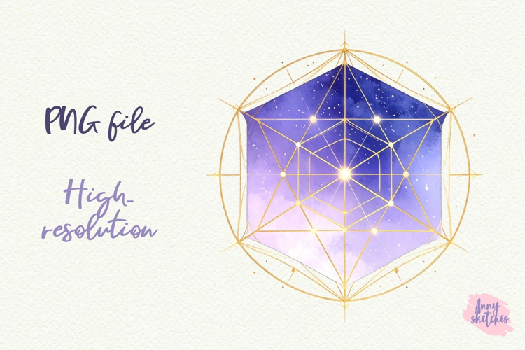 Metatrons Cube Sacred Geometry Celestial Watercolor Clipart – Sublimation Design