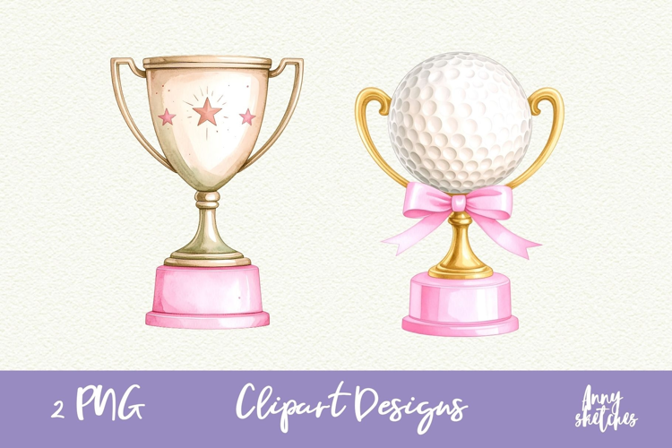 Vintage Coquette Golf Trophy Retro Pink Golf Clipart example image 1