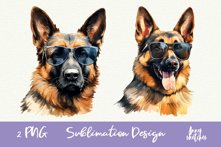 2 German Shepherd in Sunglasses Cool Dog Watercolor Clipart example image 1