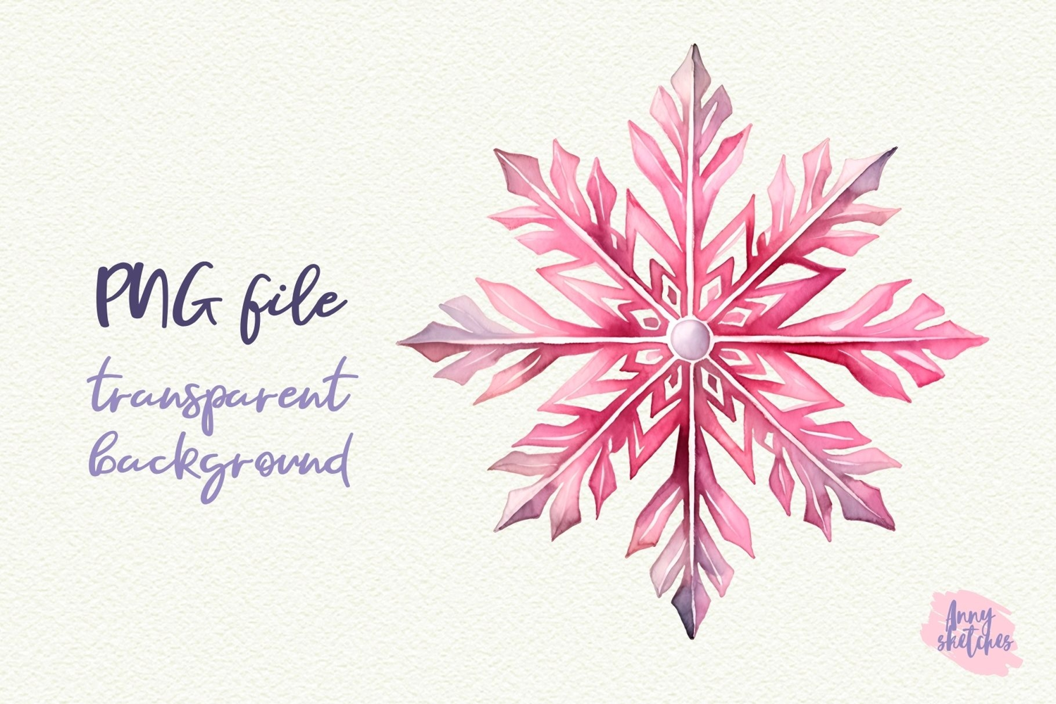 Winter Snowflakes Watercolor Clipart Snowflake Clipart Christmas Clipart Pink Christmas Pink Winter Snowflake Png Sublimation Design Coquette Clipart
