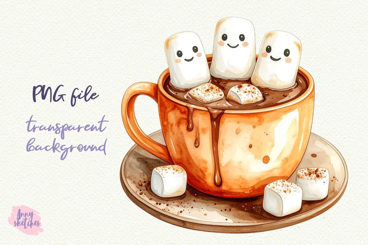 Hot Chocolate PNG Halloween Ghost Cafe Clipart Sublimation example image 1