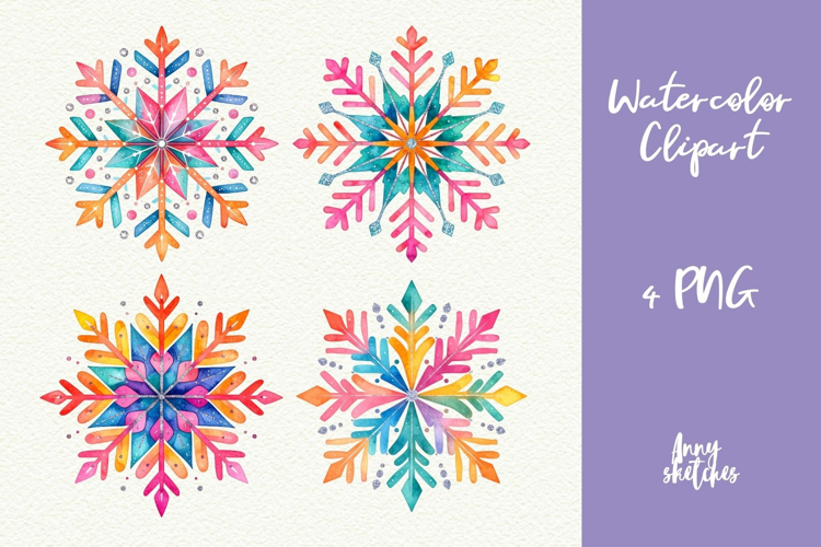 4 Disco Snowflakes Clipart Groovy Christmas PNG example image 1