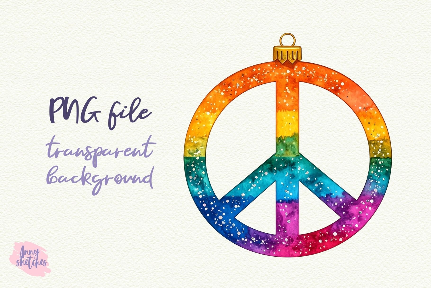 Retro Hippy Peace Sign Christmas Ornament Clipart Disco example image 1