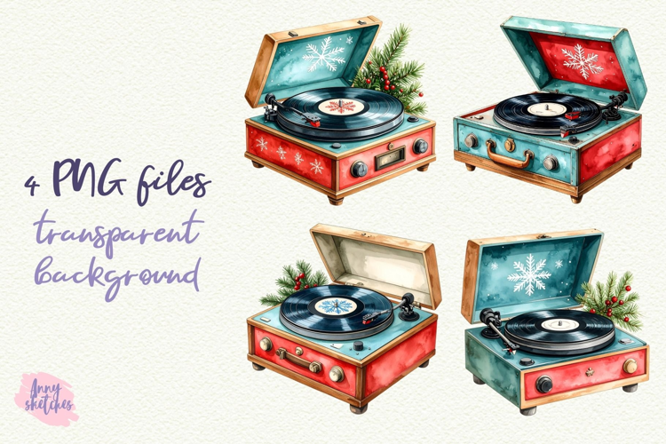 4 Retro Record Player Clipart Vintage Christmas PNG example image 1