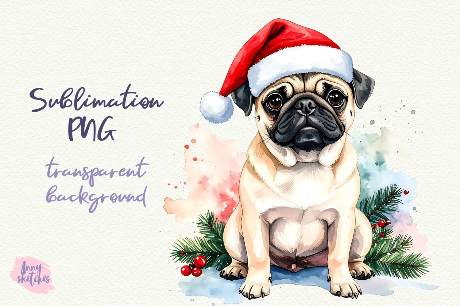 Vintage Christmas Pug Santa Clipart Retro Christmas Dog PNG example image 1