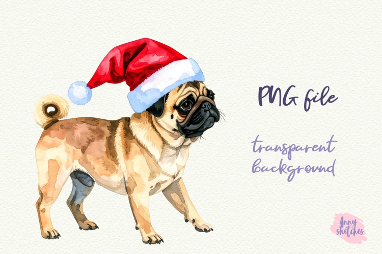 Vintage Christmas Pug Santa Clipart Retro Christmas Dog PNG example image 1