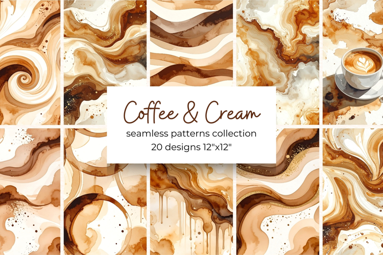 Coffee & Cream Digital Paper Watercolor Seamless Patterns