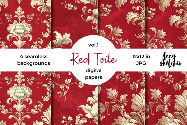 Similar Design Products to Red Toile de Jouy Digital Paper Kit Rococo Patterns