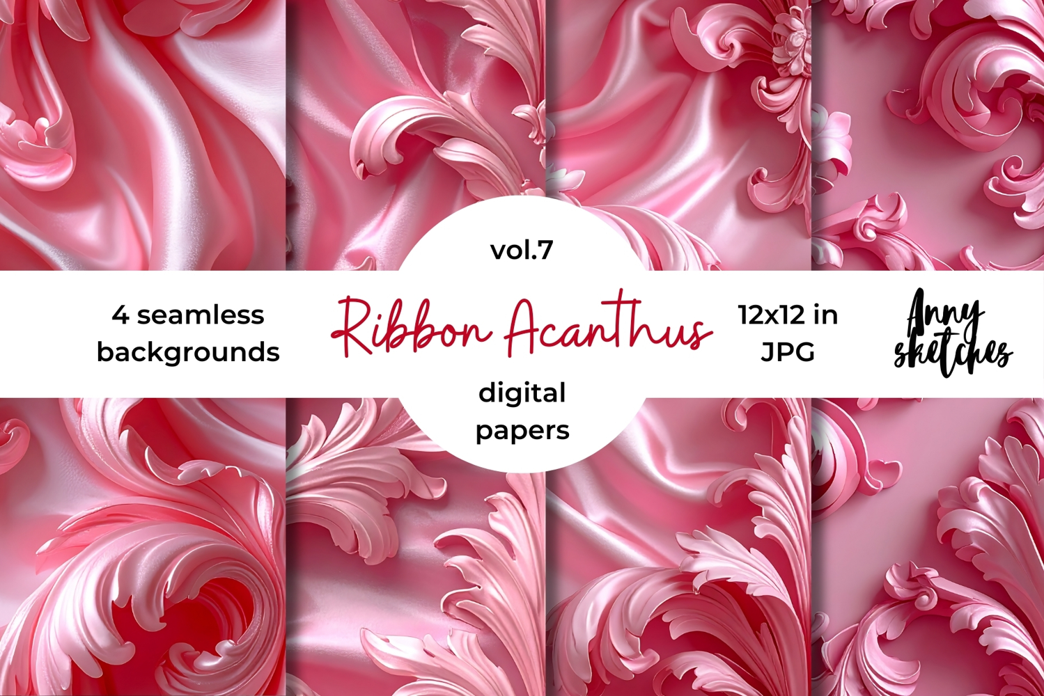 Floral Ribbon Digital Paper Kit Rococo Valentine Damask Seamless Patterns Acanthus Leaf Ornate Digital Papers Romantic Baroque Ribbon Backgrounds Elegant Rococo Floral Scrapbook Paper Vintage Damask Digital Paper Pack Classic Valentine Ornamental Patterns Printable Rococo Floral Backgrounds Feminine Ribbon Damask Paper Kit Luxury Rococo Digital Papers