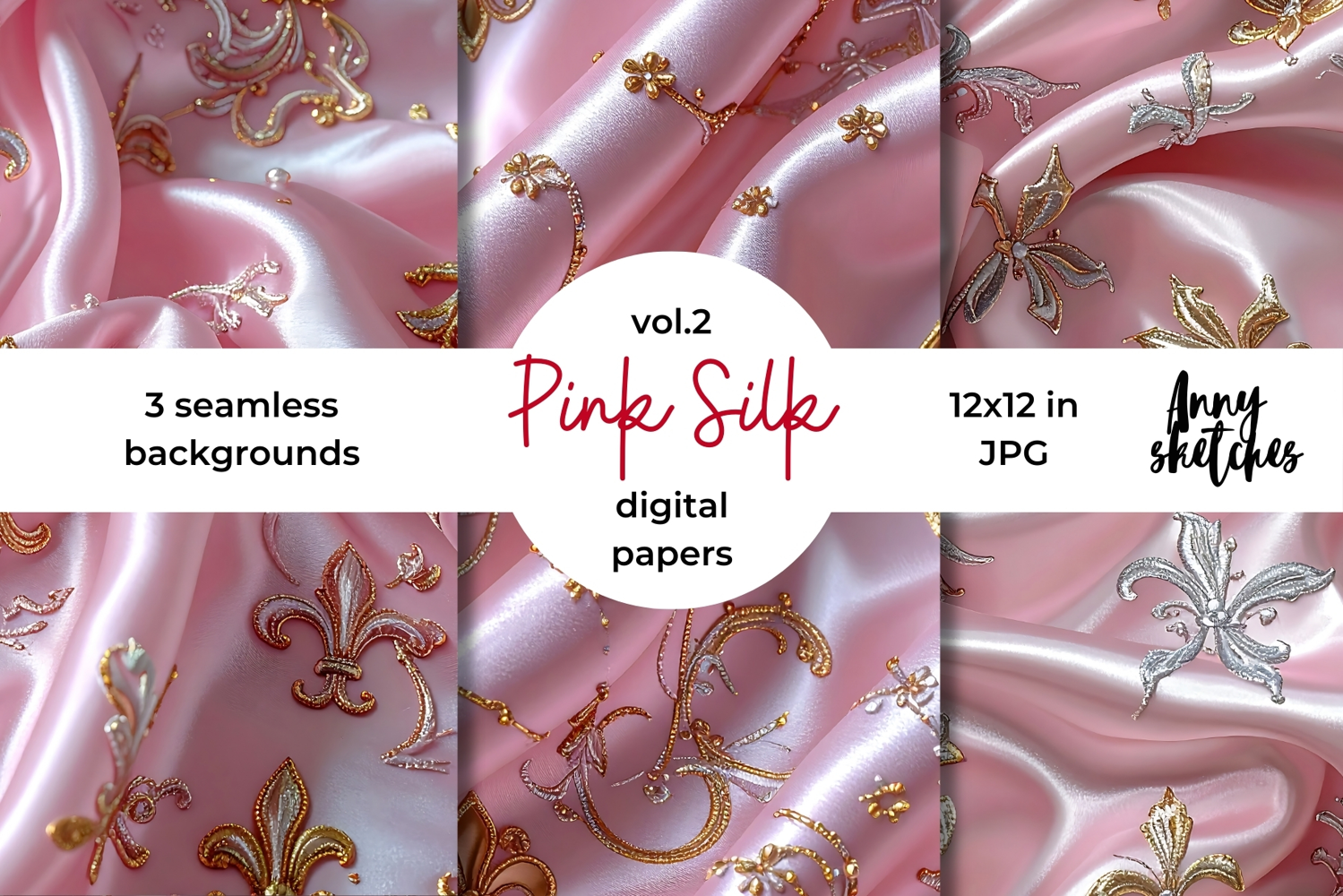 Pink Silk Digital Paper Kit – Rococo Valentine Seamless Patterns