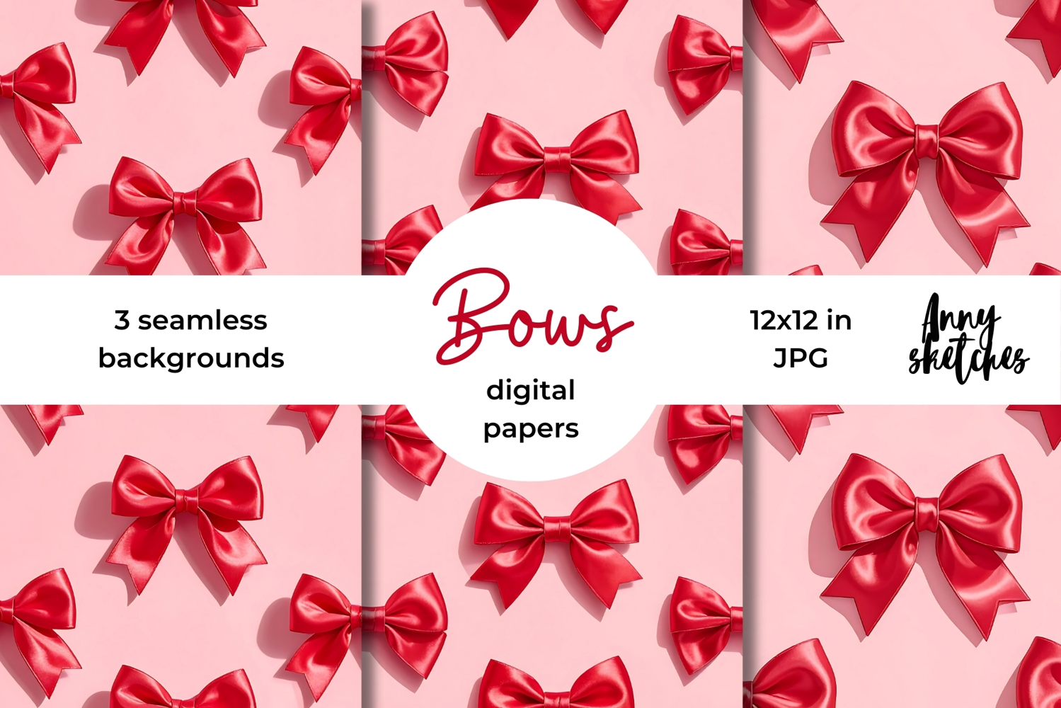 Red Coquette Bows Digital Paper Kit – Pink Seamless Patterns
