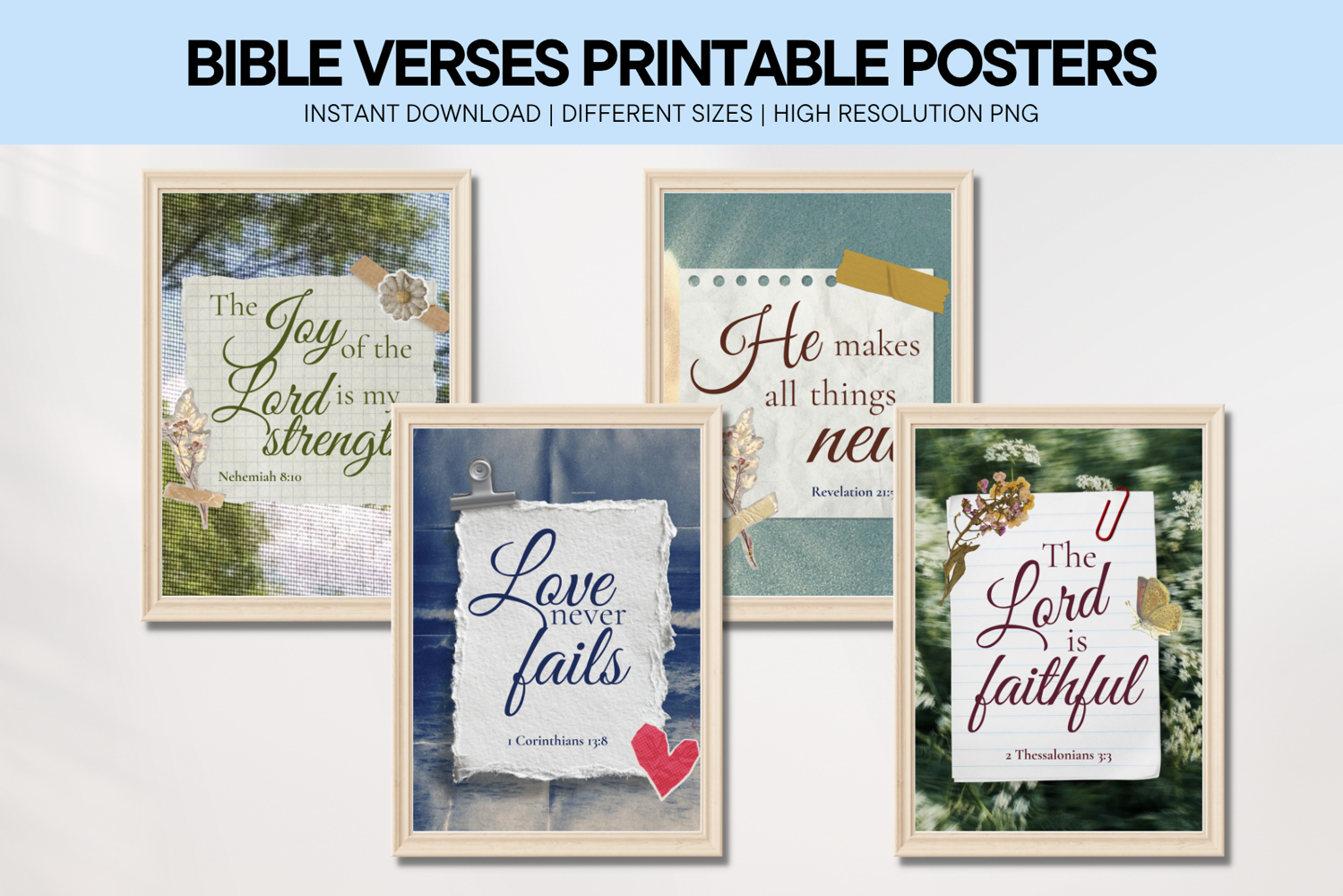 Bible Verse Collage Wall Art – Faith Typography Printable Posters