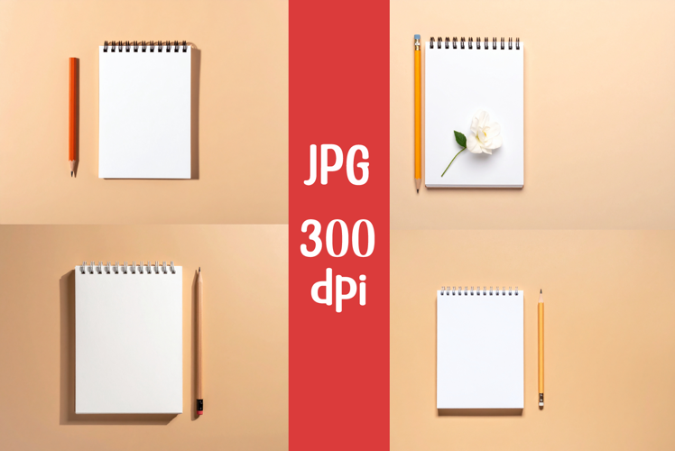 4 Flat lay of a single notebook and pencil on beige bkg JPG example image 1
