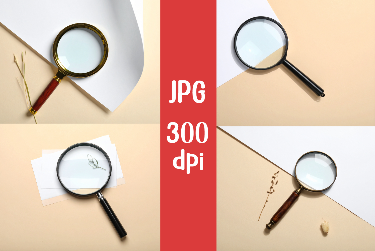 4 One magnifying glass on white paper, beige background JPG example image 1