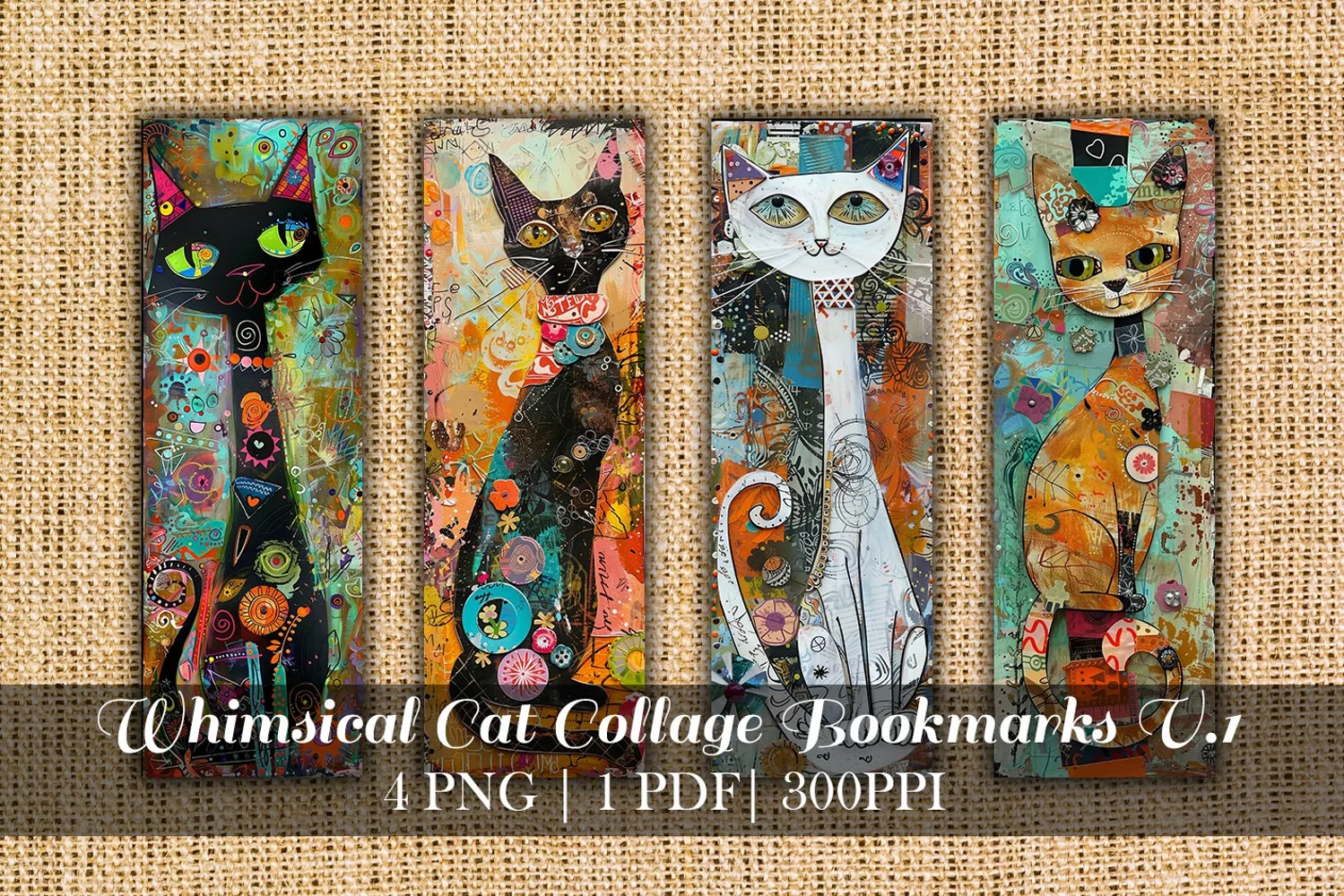 Whimsical Cat Collage Bookmark V.1 example image 1