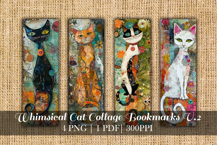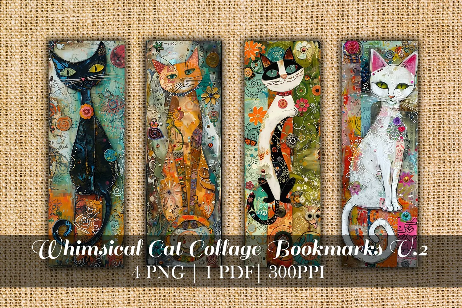 Whimsical Cat Collage Bookmark V.2 example image 1