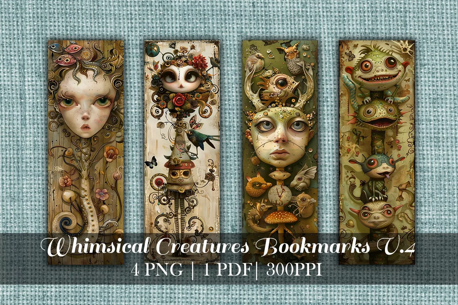 Whimsical Creature Collage Bookmark Set 4 example image 1
